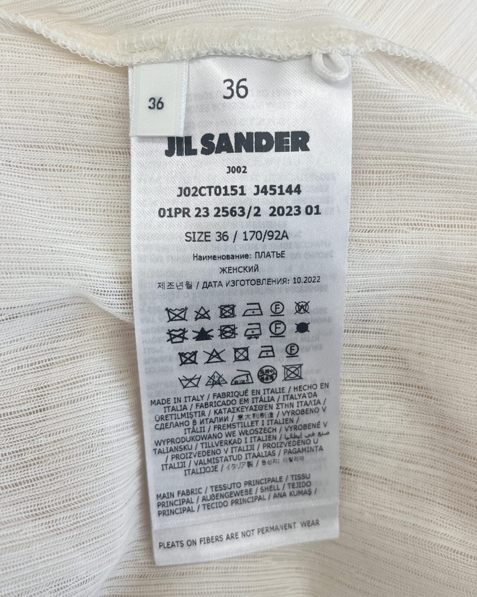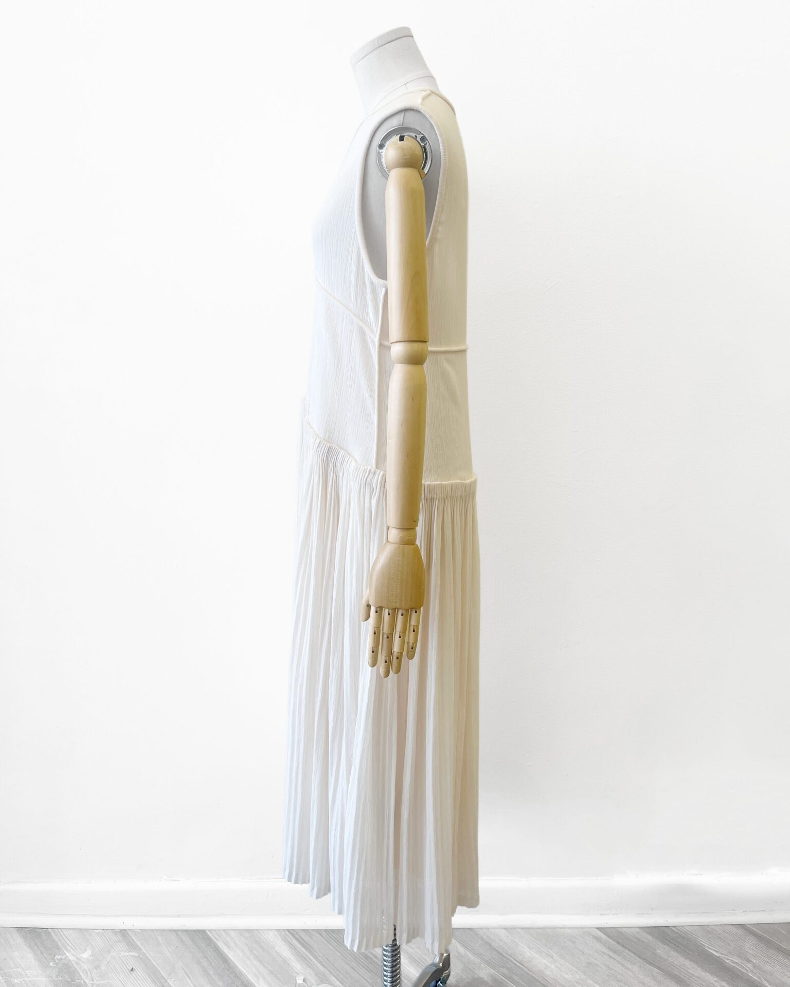 Gorgeous summery Jil Sander textured ivory white cotton gown with an elegant pleated full skirt