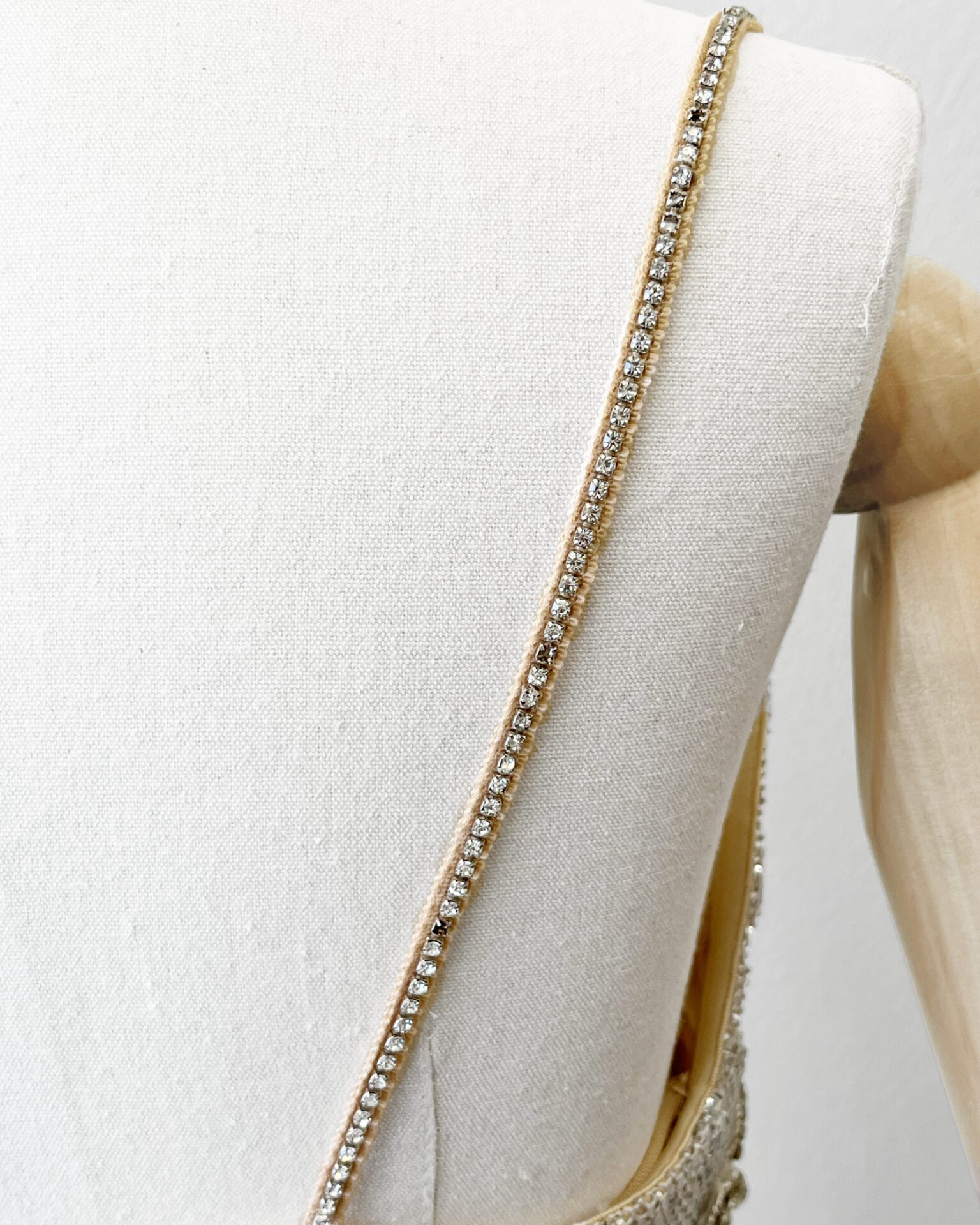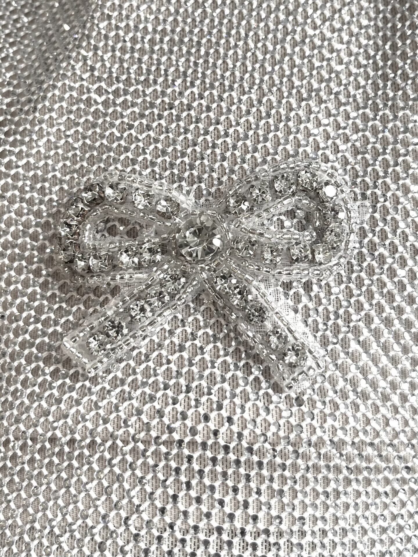 Silver sparkly crystal embellished LoveShackFancy Wilden dress with nude slip and crystal bow details throughout dress.