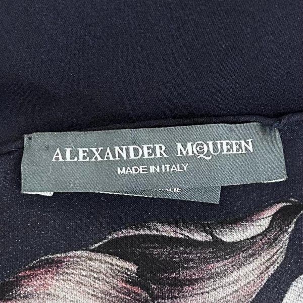 Alexander McQueen silk chiffon scarf in navy with skull/flower print