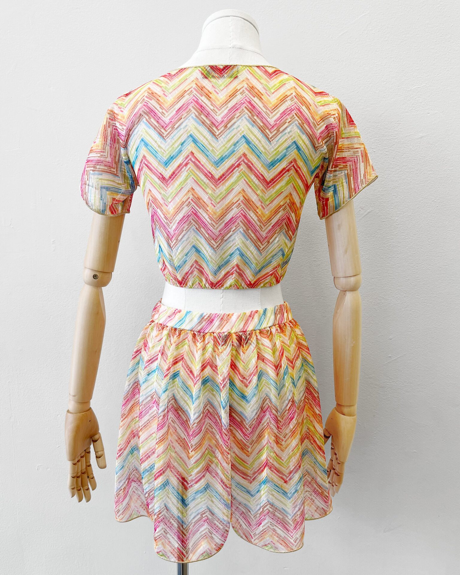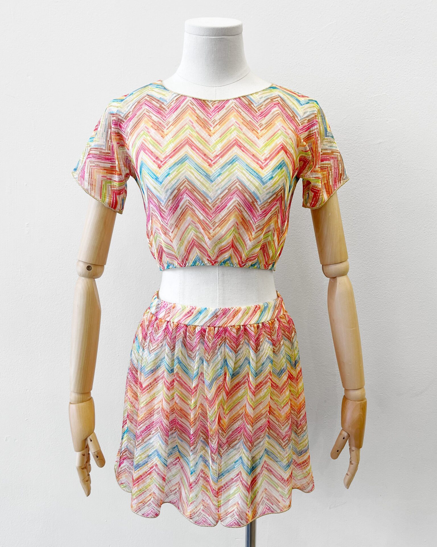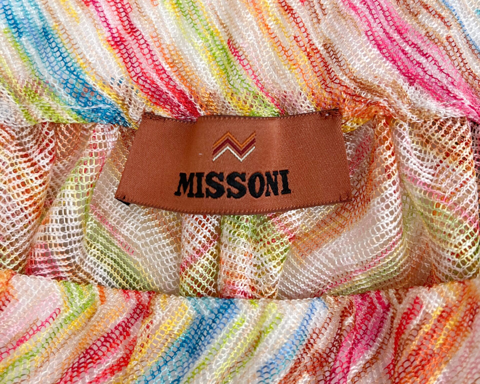 Missoni knit multicolour chevron patterned sheer mini shorts! Perfect for the beach or a relaxing summer day. Pairs with Missoni striped chevron coverup t-shirt. (pictured)