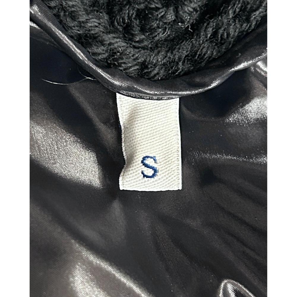 Black cable knit jacket with a puffer back. The jacket zips open to an unlined interior, and has two side zippered pockets. See label images for material content. Condition: Purrrfect. New with tag still on.
