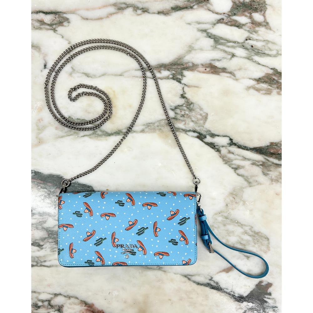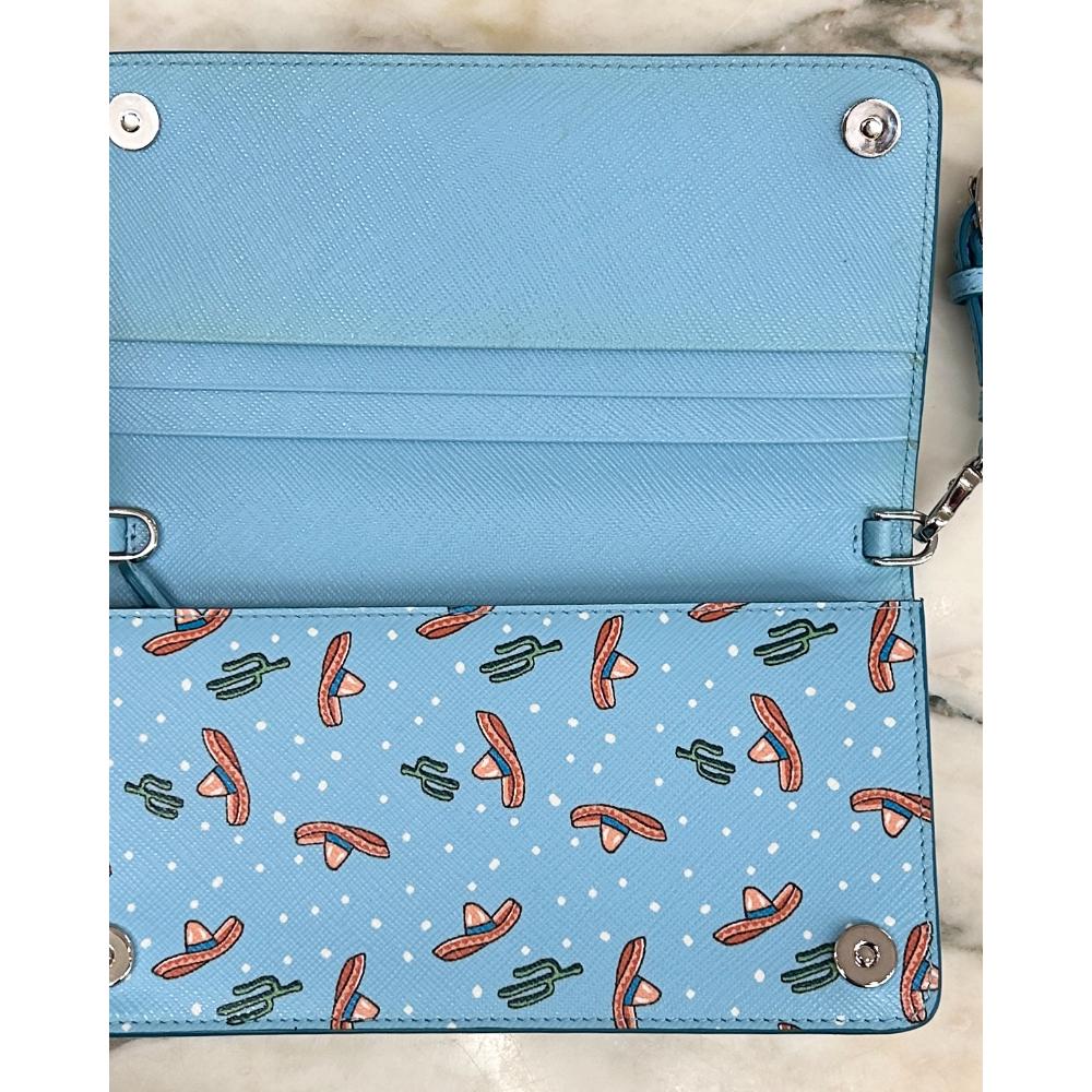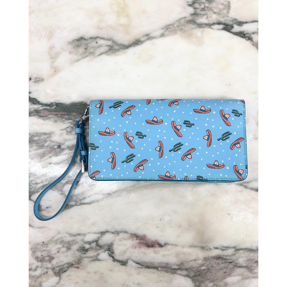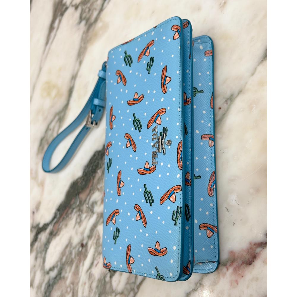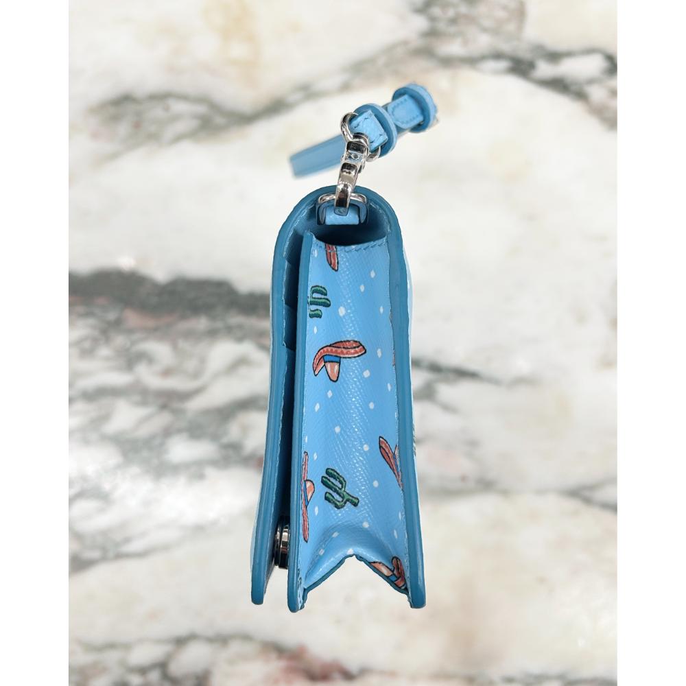 Prada blue Saffiano sombrero & cactus print crossbody bag/wristlet