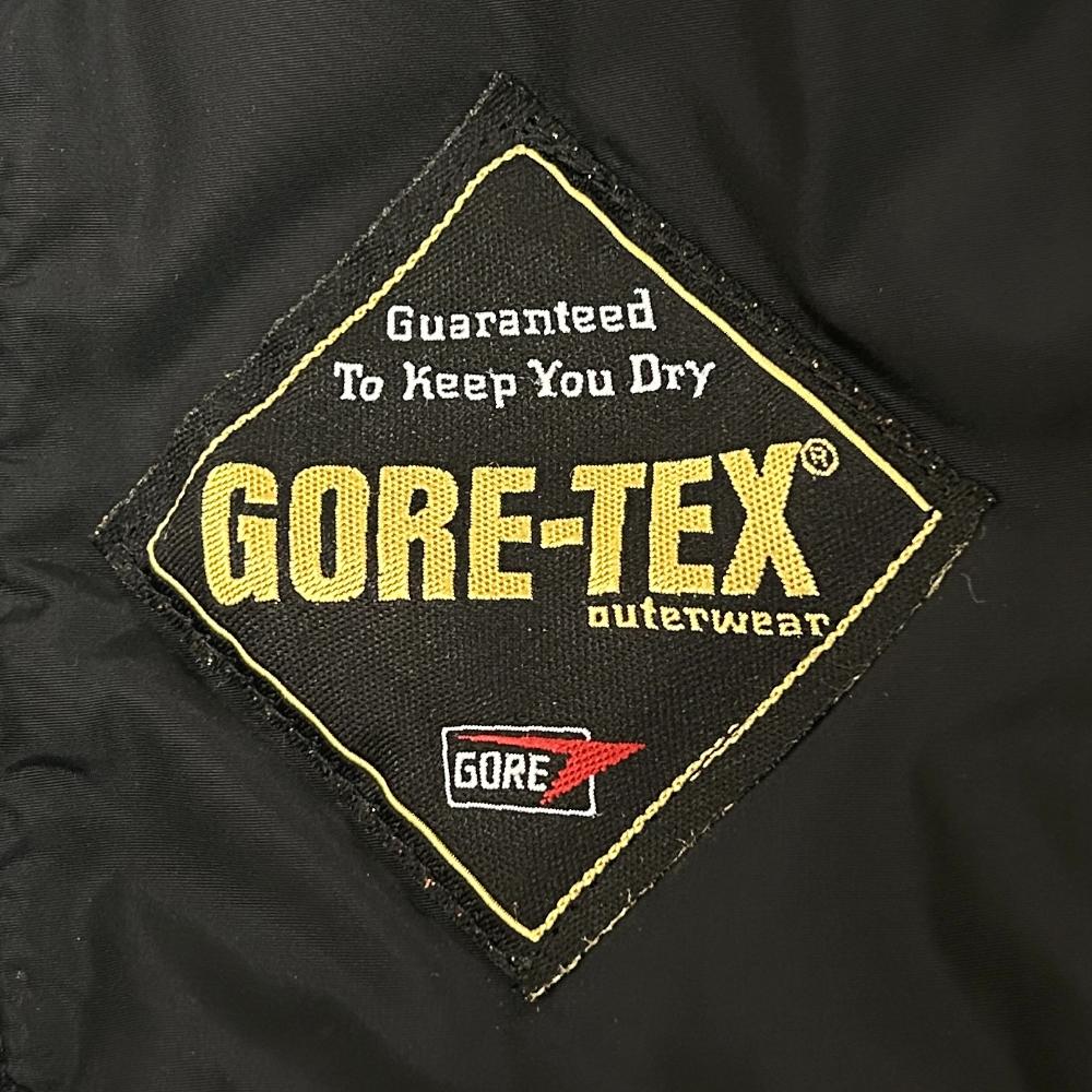 Black hooded jacket made with Gore-Tex fabric. The jacket zips open to a lined interior, the outer has four pockets, and there is two inner pouches on the lining. See label images for material content. Condition: Near purrrfect. Only wear is on the zipper metal, where it is slightly faded in some spots. No other visible wear on the jacket.