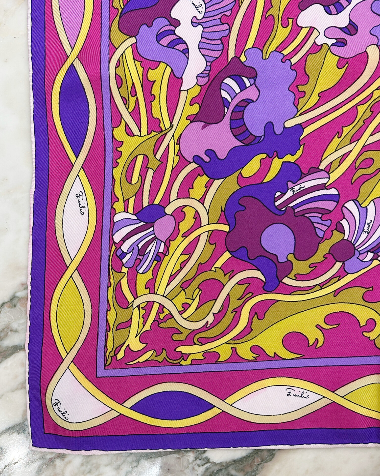 Fly off with this stunning pink and red Pegasus print wrap. This Hermès Le Pegase silk shawl is large enough to be worn as a pareo or as a shawl/wrap, measuring 56″ x 56″. Box not included. Condition: purrrfect.