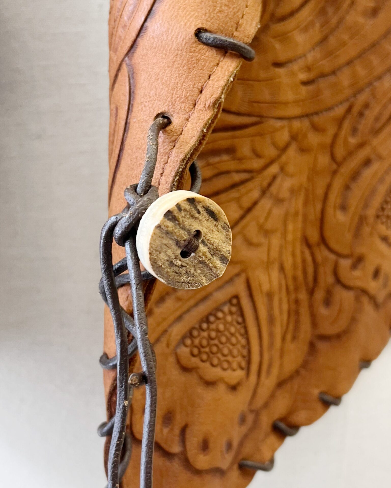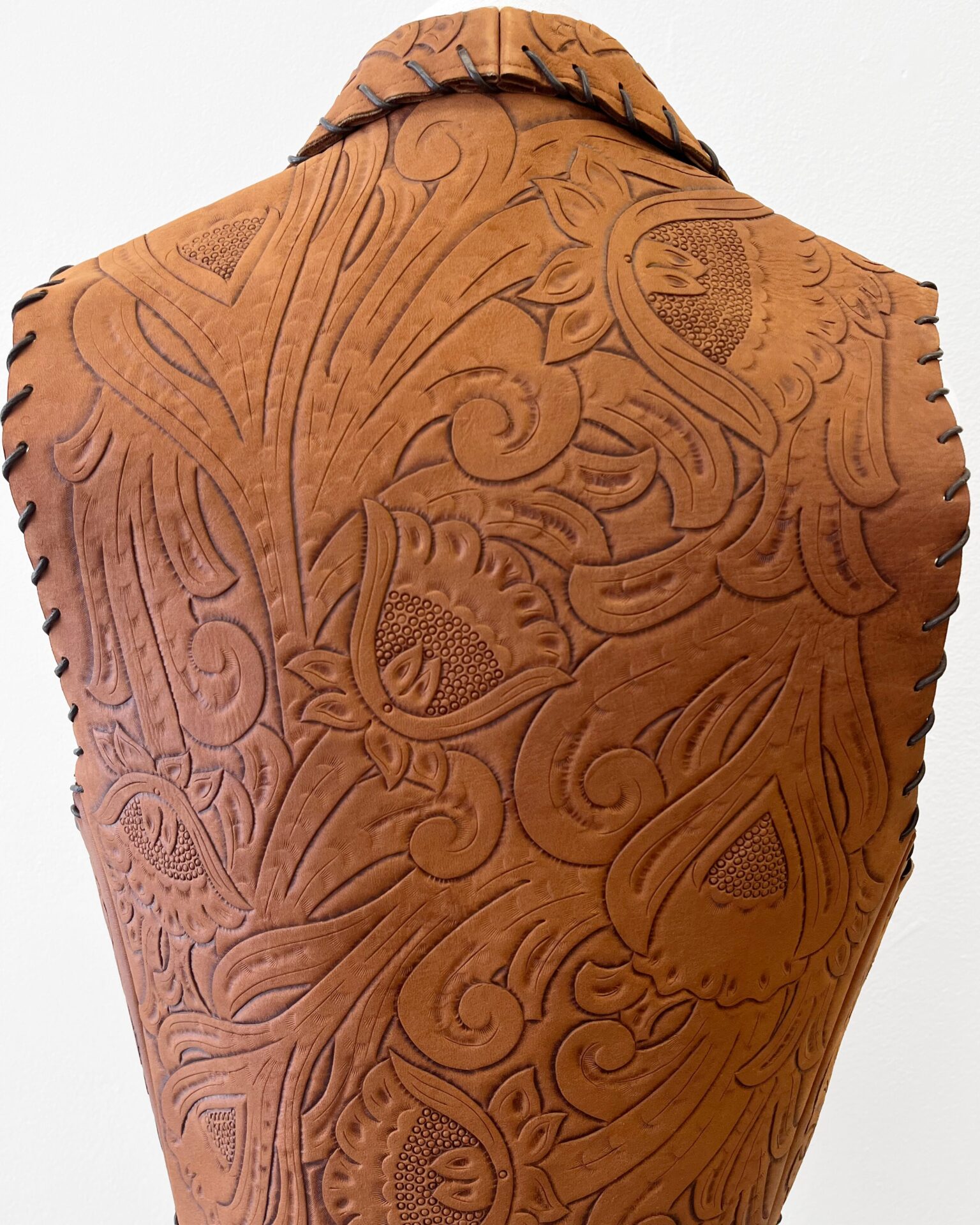 Vintage Ralph Lauren hand tooled rust coloured leather vest with leather cord finishing and antler buttons.
