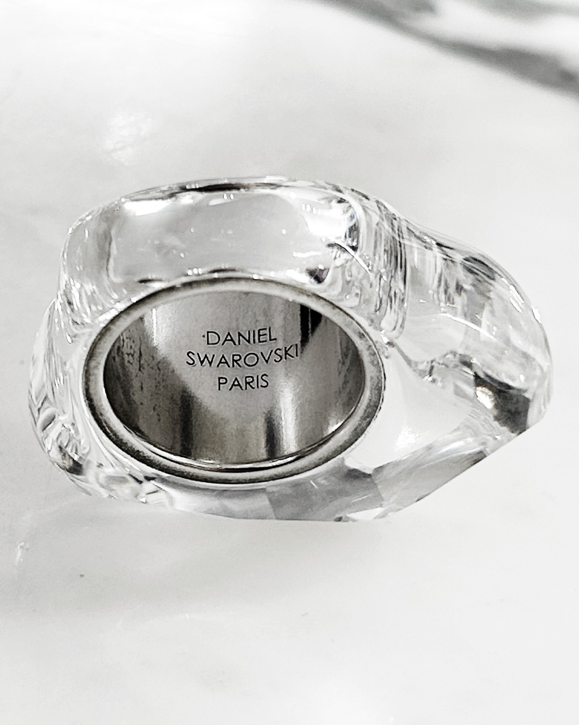 Large statement crystal ring with a silver inner band. Comes with its original box.