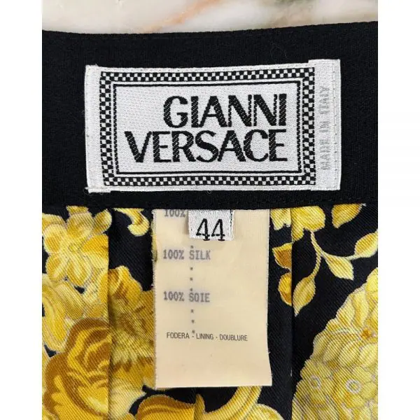 Vintage 1992 lightweight silk pleated skirt, in a gold and black Baroque print. The skirt has a side zipper and is unlined. Made from 100% silk. Condition: Vintage Purrrfection. No flaws.