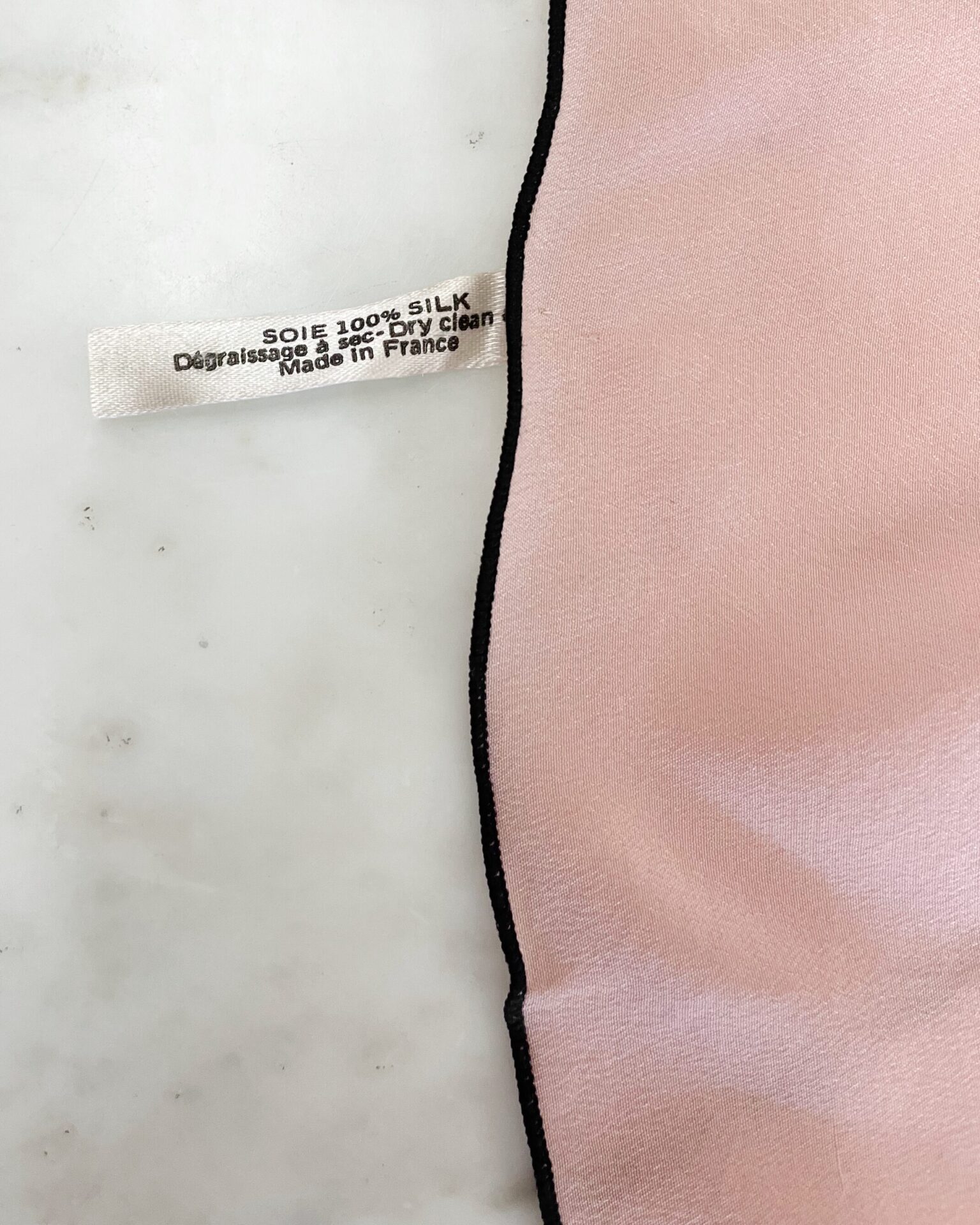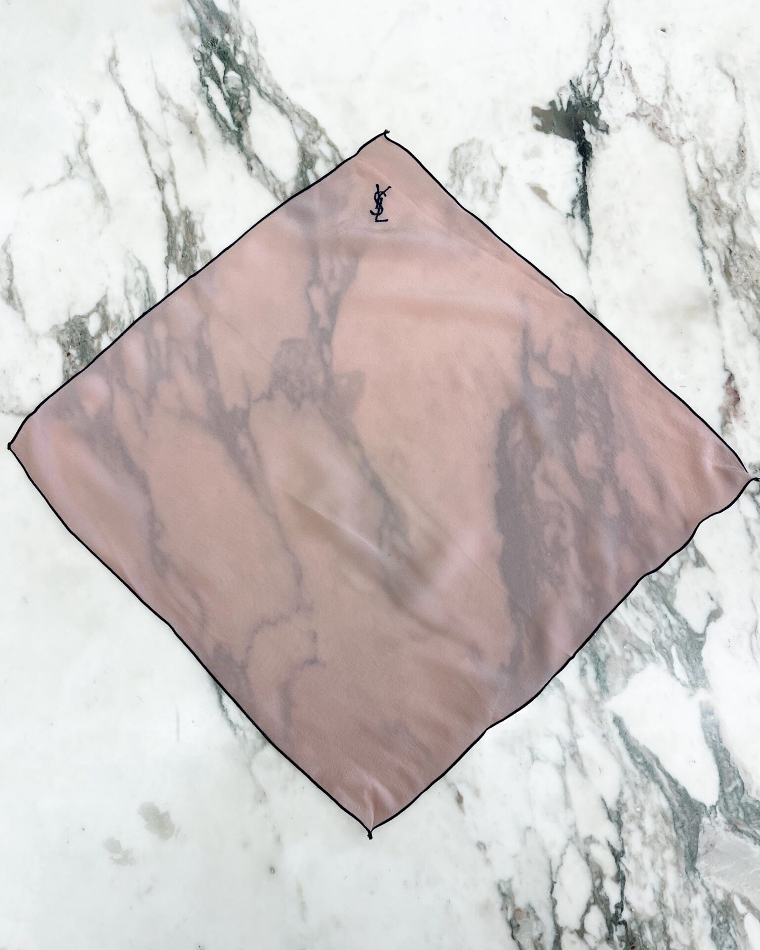 Beautiful 100% silk pink Yves Saint Laurent vintage handkerchief with navy embroidered ‘YSL’ logo and trim