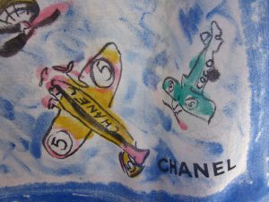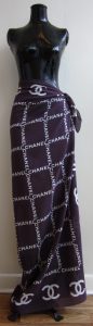 Chanel cotton pareo with airplane print. Measures 60″ x 53″.