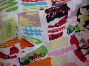 Chanel multi coloured, abstract print cotton pareo. Measures 60″ x 40″.Sold